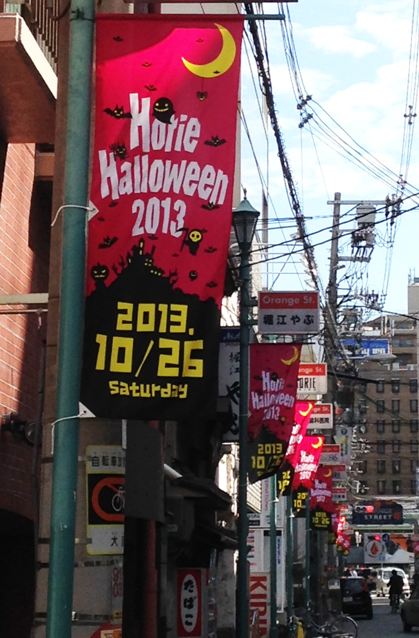 堀江ハローウィンの旗でいっぱい
